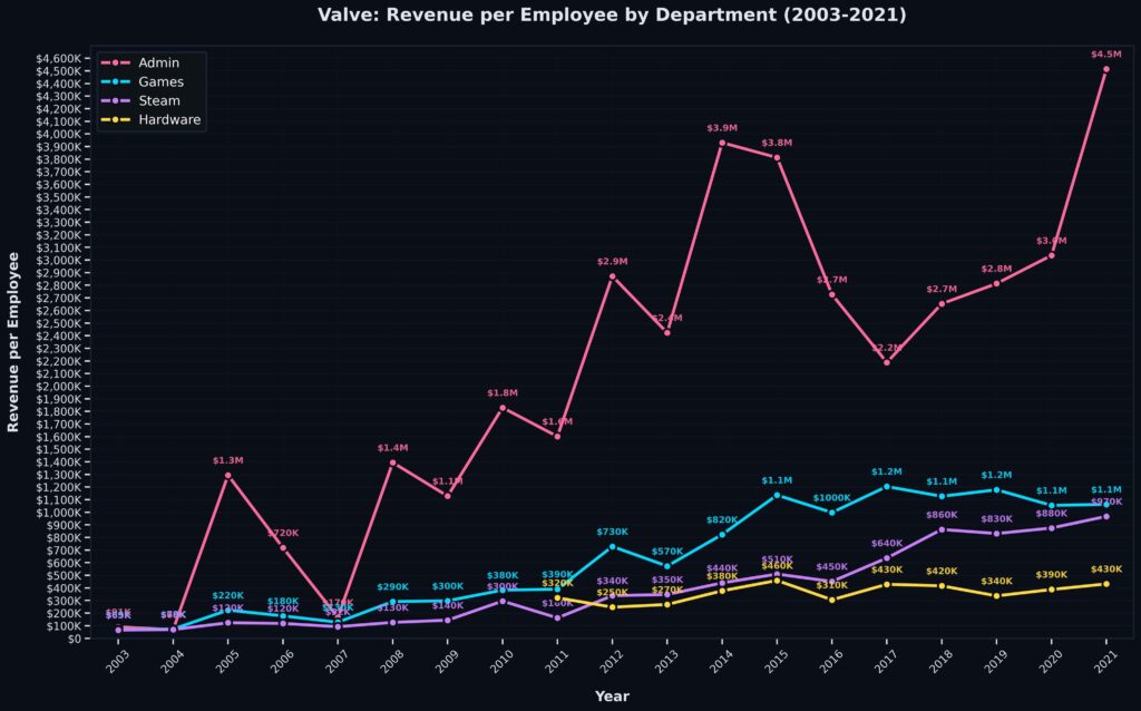 Com uma receita estimada em US$ 16,2 bilhões e uma equipe enxuta de cerca de 350 pessoas, a Valve gera impressionantes US$ 50 milhões por funcionário. Para colocar isso em perspectiva, a empresa de Gabe Newell não está apenas vencendo a concorrência; ela está jogando um esporte completamente diferente.